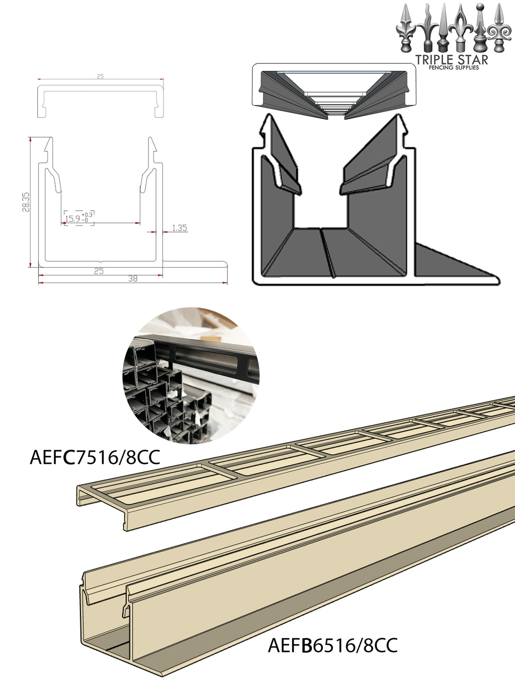 Aluminium F-Channel & Cover to suit 75x16 Classic Cream